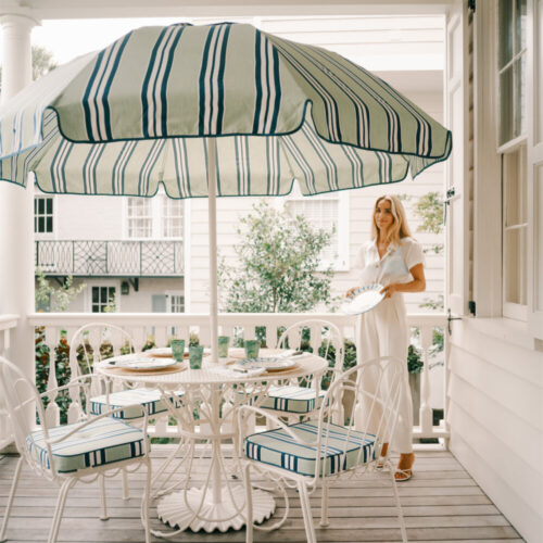 For seating, I used lightweight chairs from IKEA. Their portability makes them ideal for outdoor tablescapes and day trips. Adding comfort and style, I placed a green gingham cushion from Mrs Alice on each chair. The gingham pattern is a timeless spring motif, evoking feelings of picnic days and countryside charm.