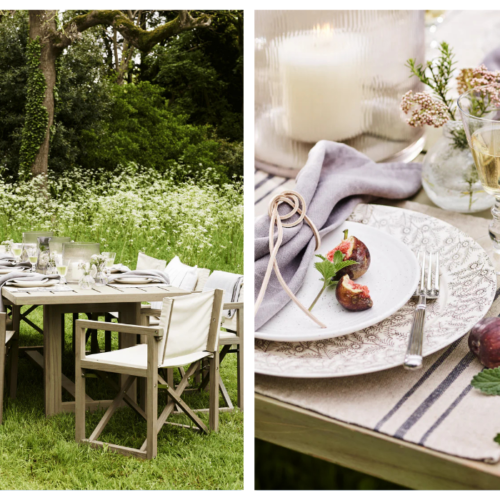 For this tablescape, I chose my green Asiatic Pheasants plates from Burleigh Pottery, a beloved classic in my collection. The green shade is perfectly tied in with the natural, rustic aesthetic. This pattern is an excellent choice for spring, as it blends beautifully with seasonal greenery and floral accents. If you’re starting your own collection, Asiatic Pheasants are available in a variety of colours to suit different moods and settings.